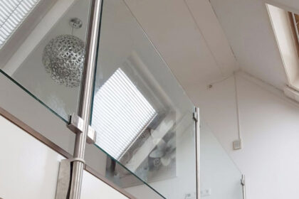 3. Glas: Glazen leuningwerken geven een strak en modern uiterlijk en bieden een onbelemmerd zicht. Ze zijn ideaal voor balkons en trappen waar je het gevoel van ruimte wilt maximaliseren.